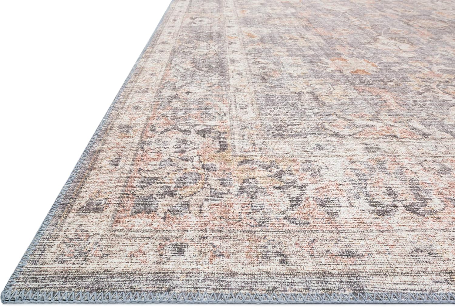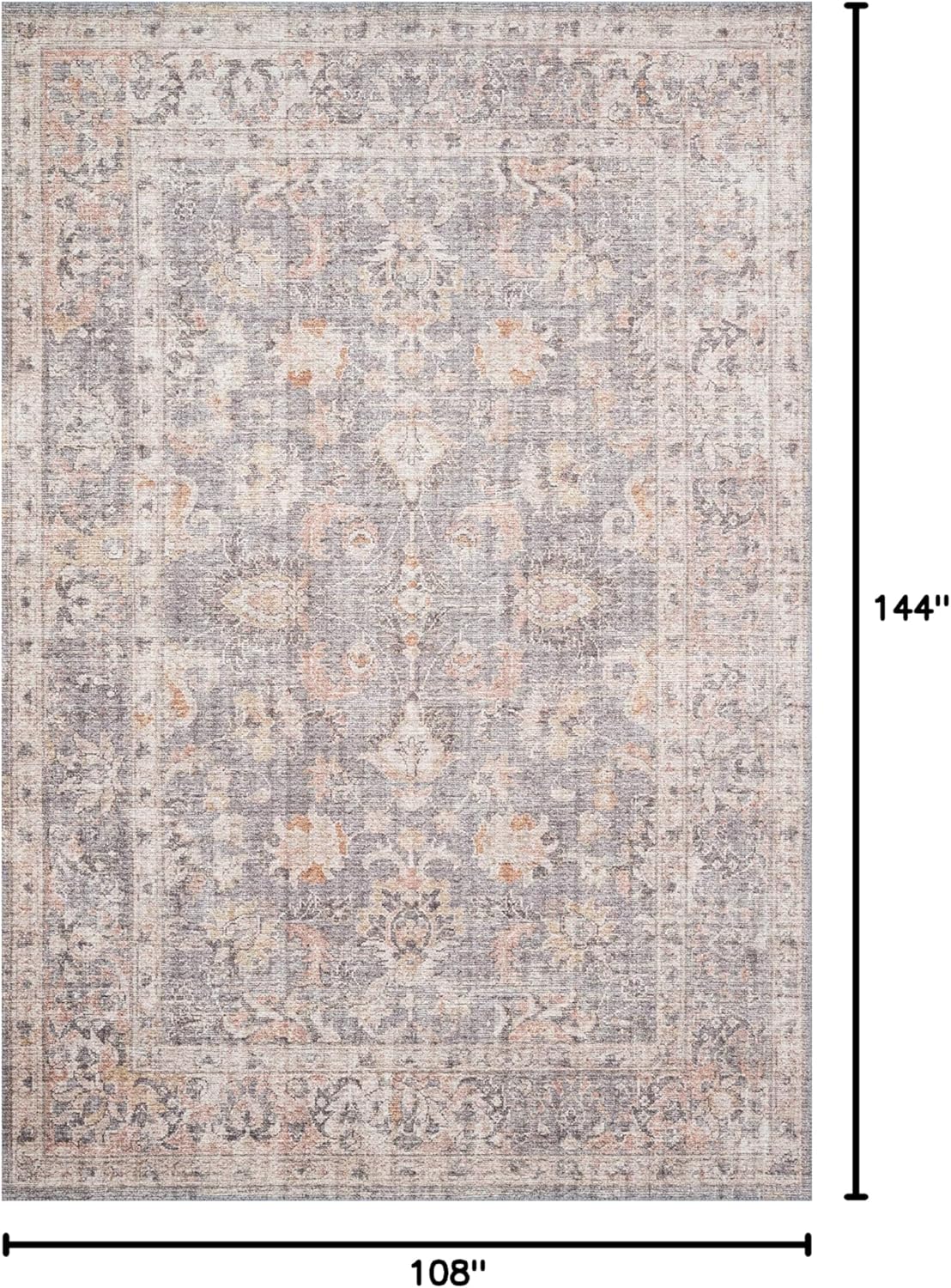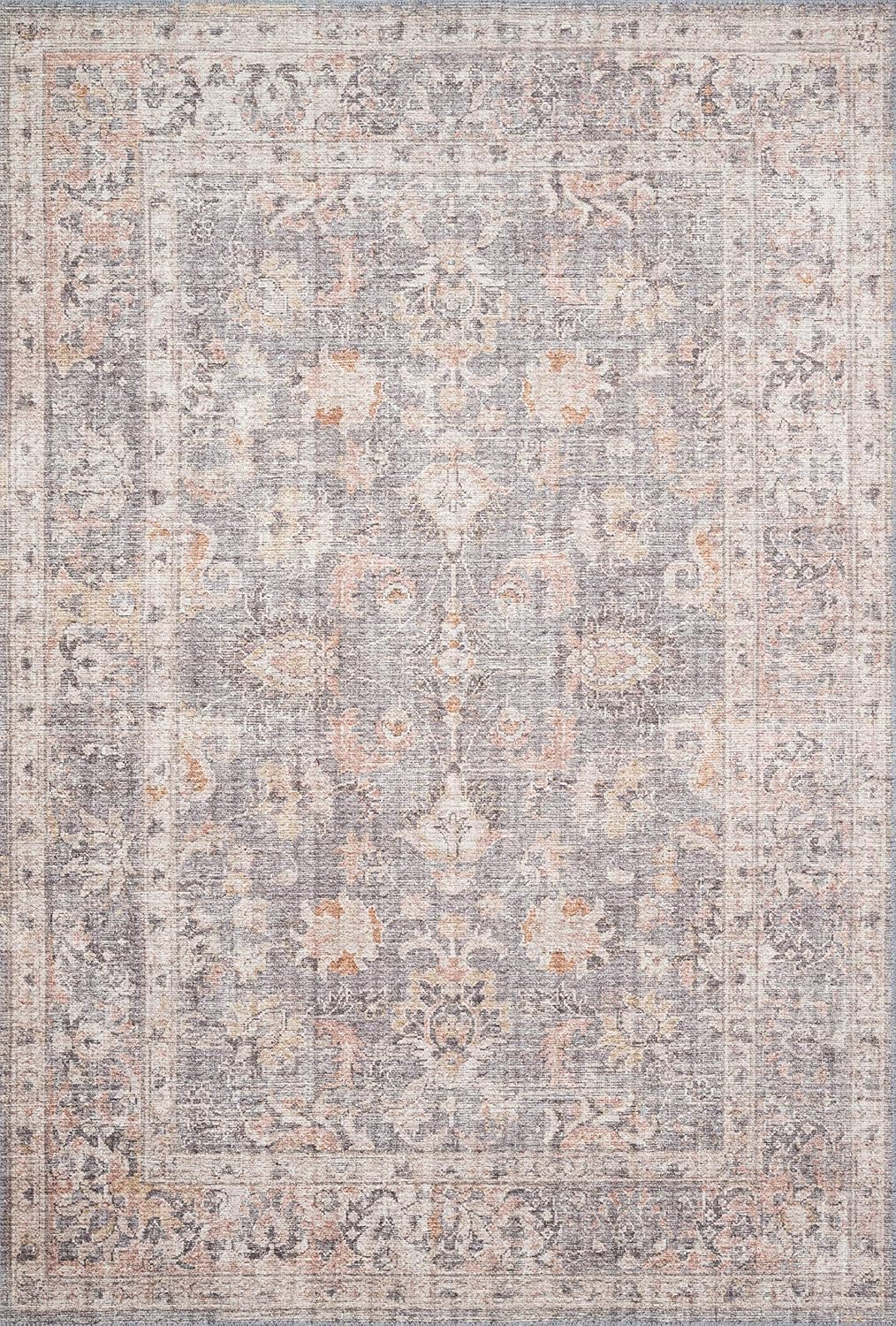Loloi II Skye Collection SKY-01 Grey/Apricot 9′-0″ x 12′-0″, 13″ Thick,Area Rug,Soft,Durable,Vintage Inspired,Distressed,Low Pile,Non-Shedding,Easy Clean,Printed,Living Room Rug