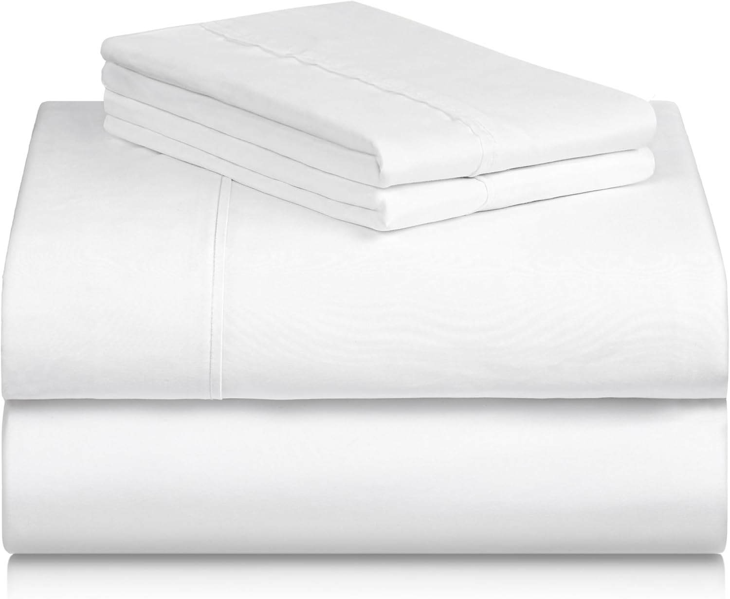 LuxClub 4 PC Queen Sheet Set, Bed Sheets, Deep Pockets 18″ Eco Friendly Wrinkle Free Cooling Machine Washable Hotel Bedding Silky Soft – White