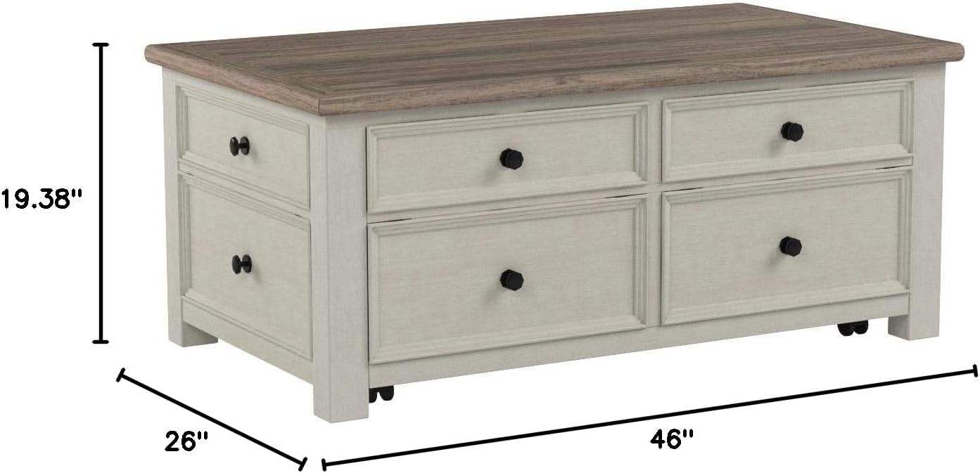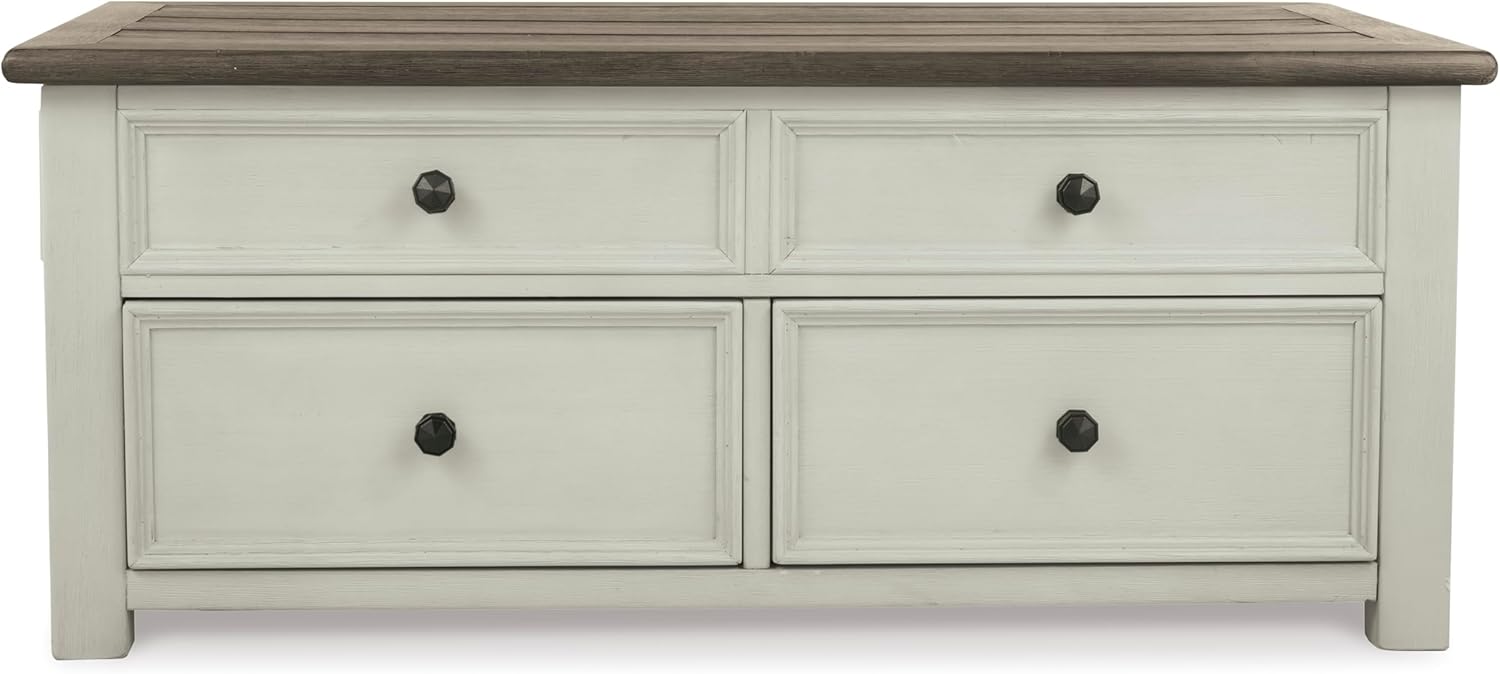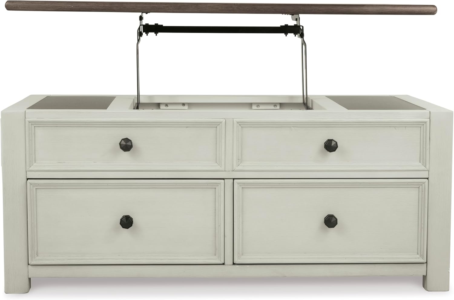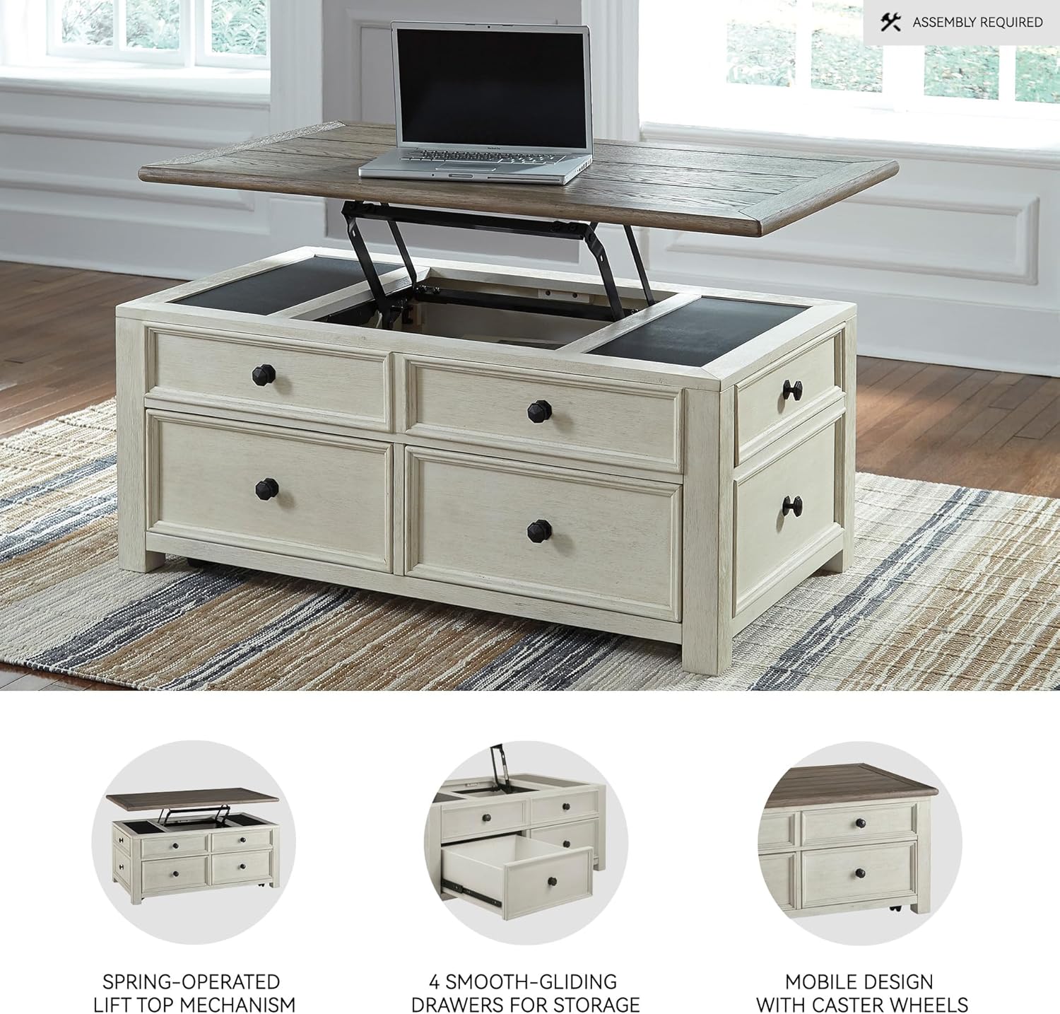 Signature Design by Ashley Bolanburg Farmhouse Lift Top Coffee Table with Drawers, Antique Cream & Brown